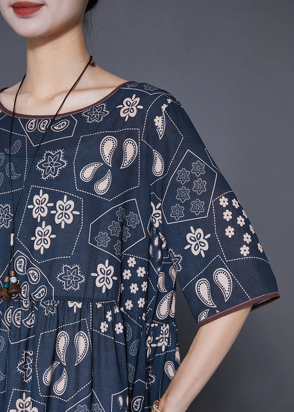 Women Black Oversized Print Silk Long Dress Summer LY7669