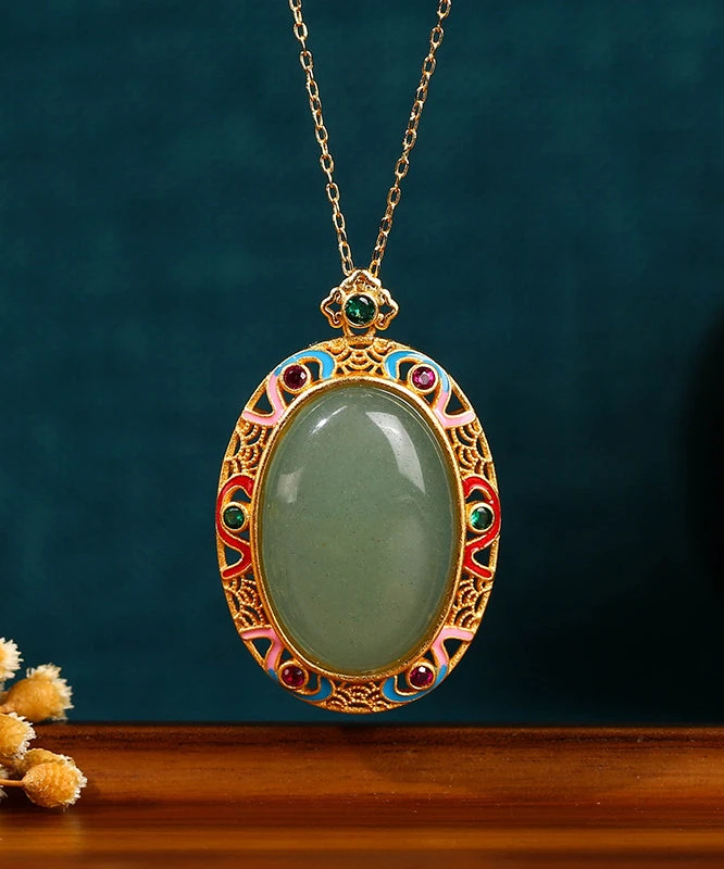 Elevate your style with our Women’s Gold Copper Overgild Jade Enamel Pendant Necklace, adorned with auspicious clouds. This luxurious piece is crafted with intricate details, embodying elegance and exclusivity.