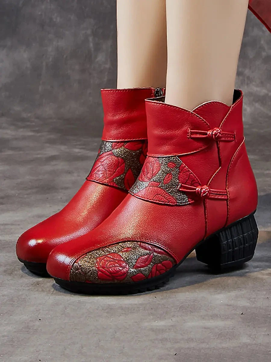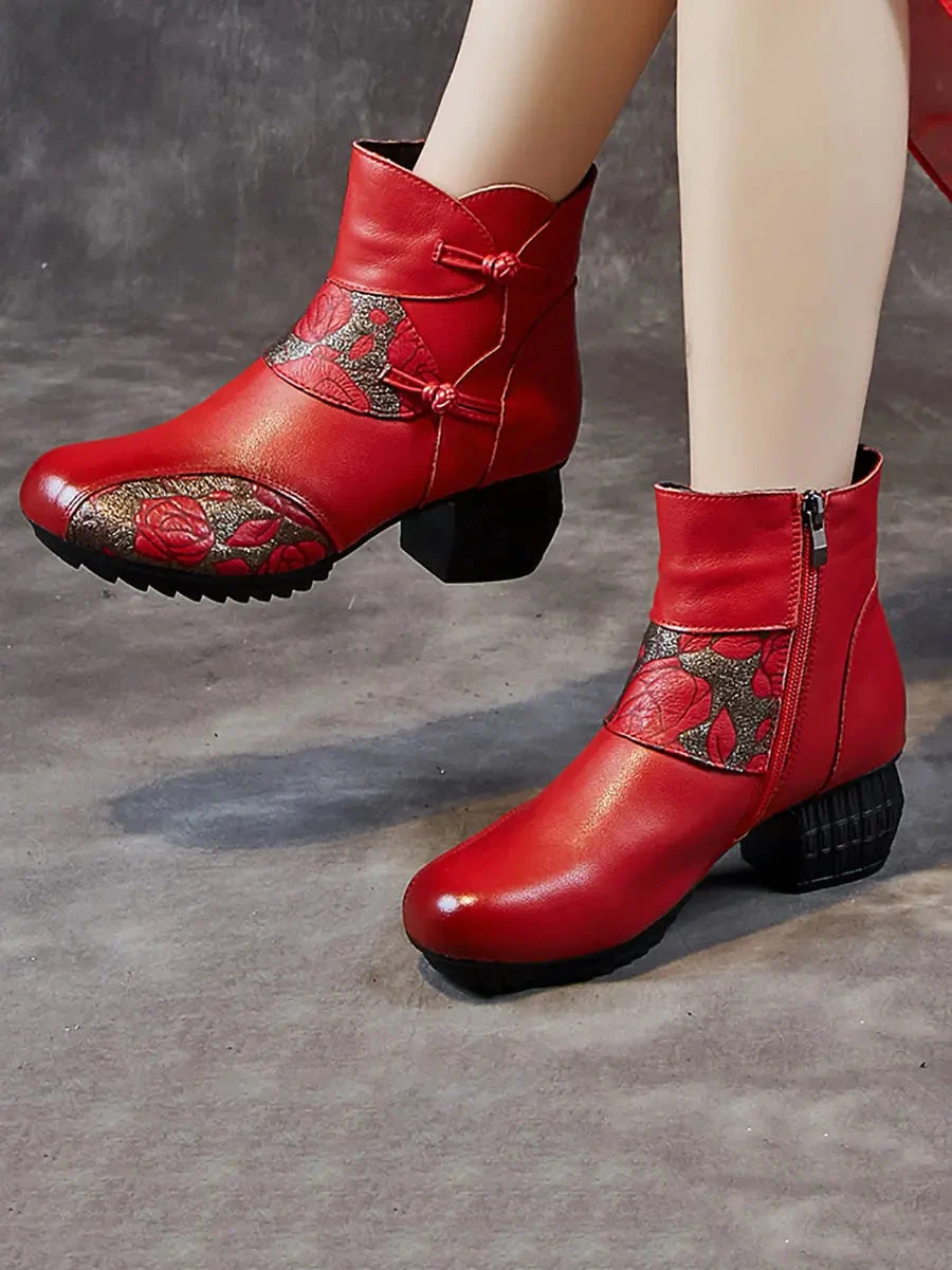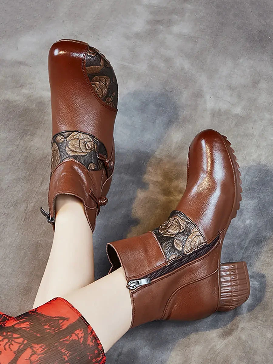 Put a playful spring in your step with our Women Leather Flower Spliced Ankle Boots. With a unique flower spliced design, these boots are both stylish and comfortable. Step out in style and turn heads with these quirky and fun boots!