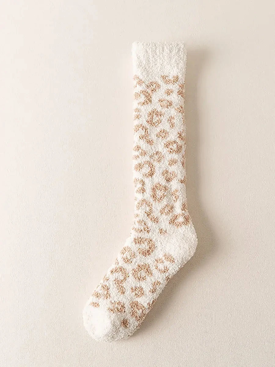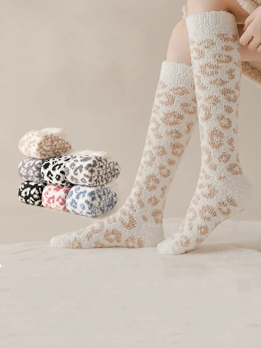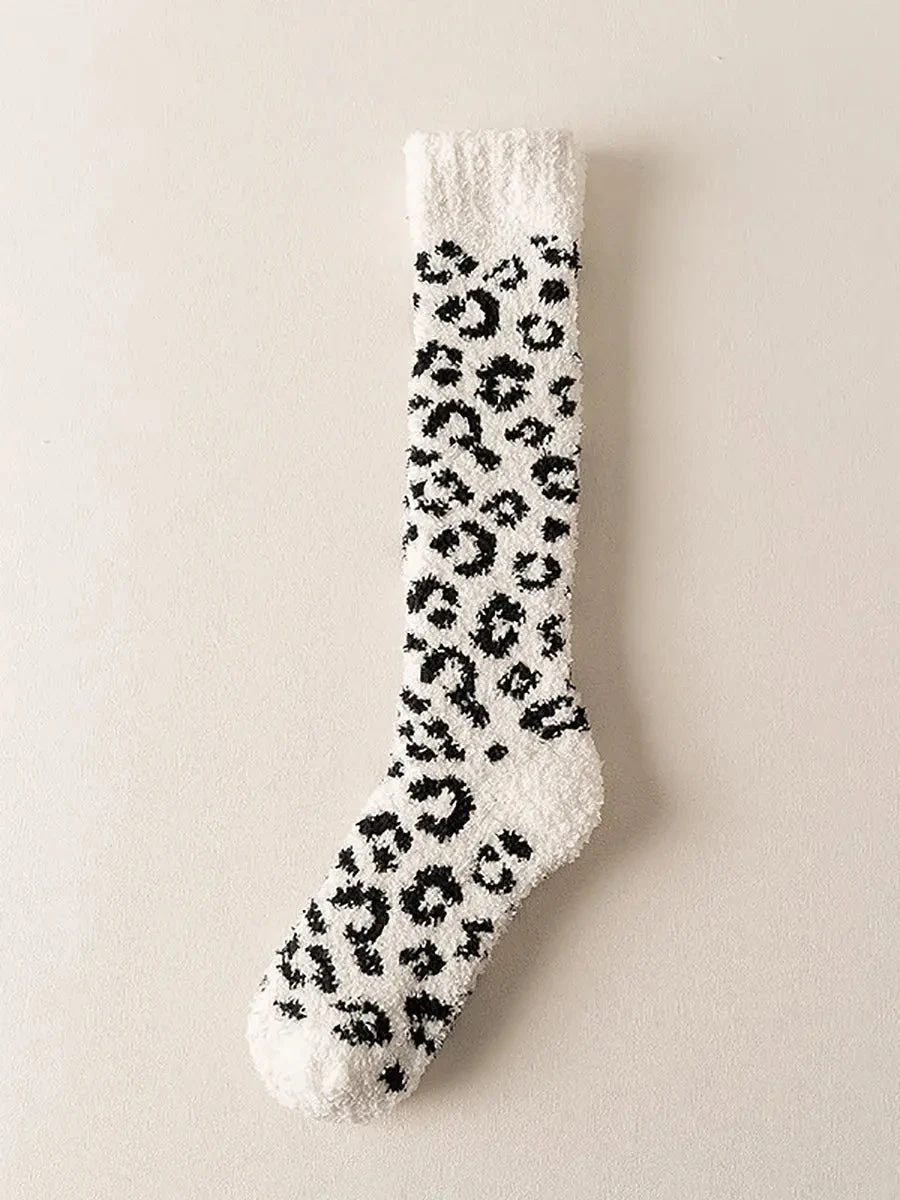 Get ready to roar with these Women Leopard Print Fleece Socks! Keep your feet cozy and stylish with these fun socks featuring a playful leopard print. Perfect for lounging around the house or adding a pop of personality to any outfit. (Meow-velous choice for fashion and comfort!)