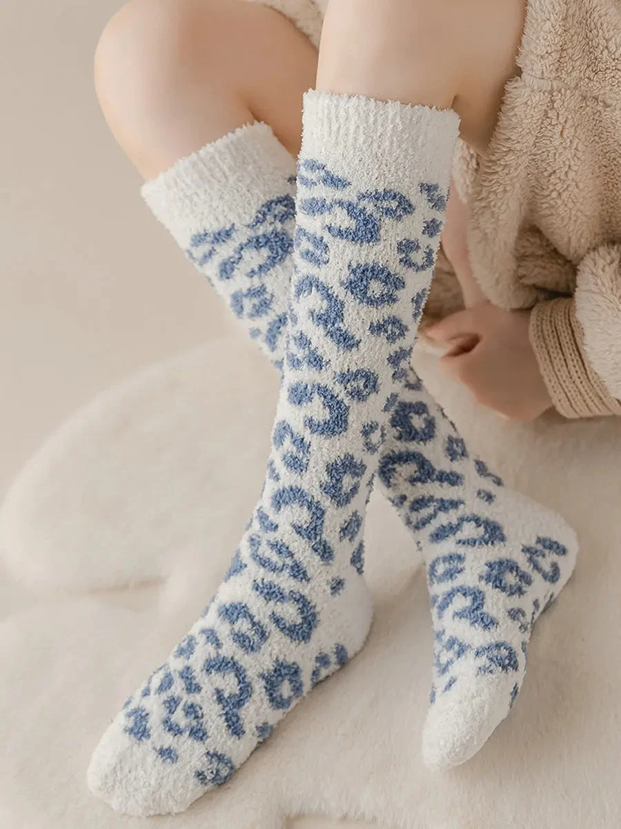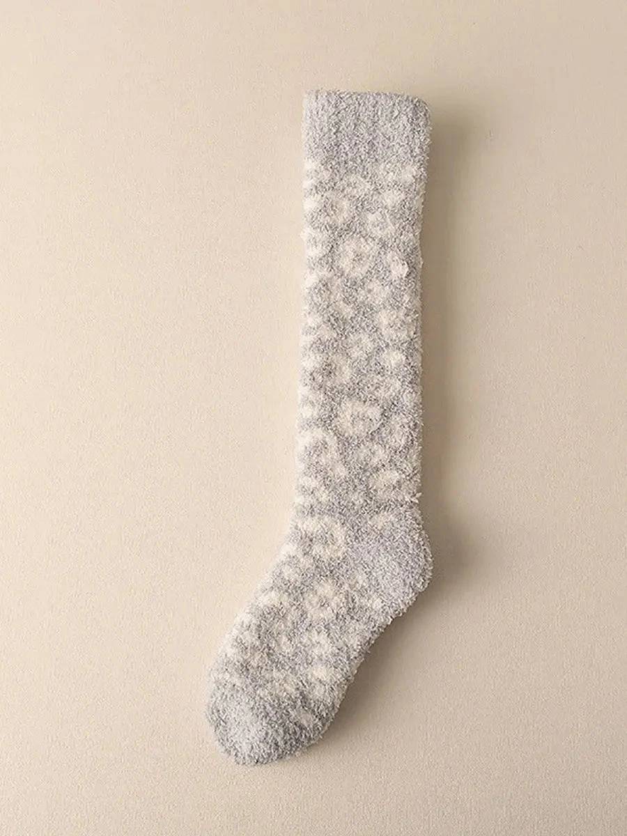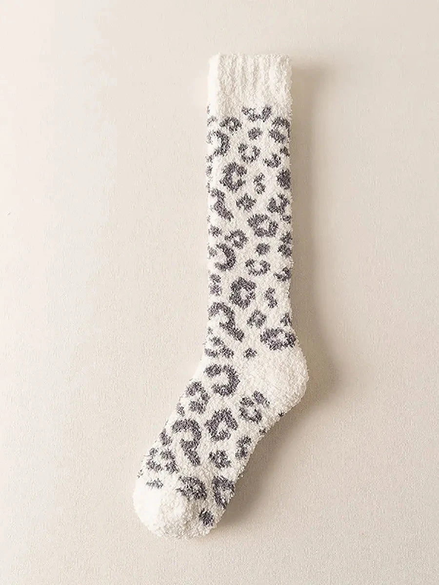 Get ready to roar with these Women Leopard Print Fleece Socks! Keep your feet cozy and stylish with these fun socks featuring a playful leopard print. Perfect for lounging around the house or adding a pop of personality to any outfit. (Meow-velous choice for fashion and comfort!)