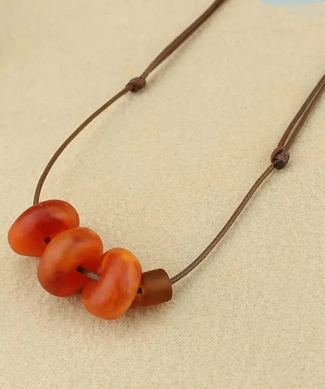 Women Red Resin Beeswax Pendant Necklace ML0287