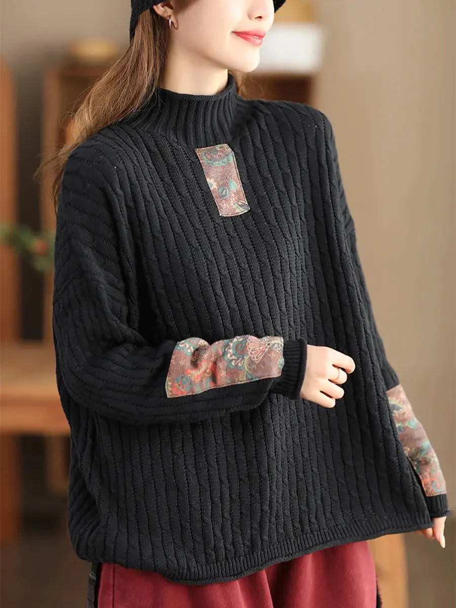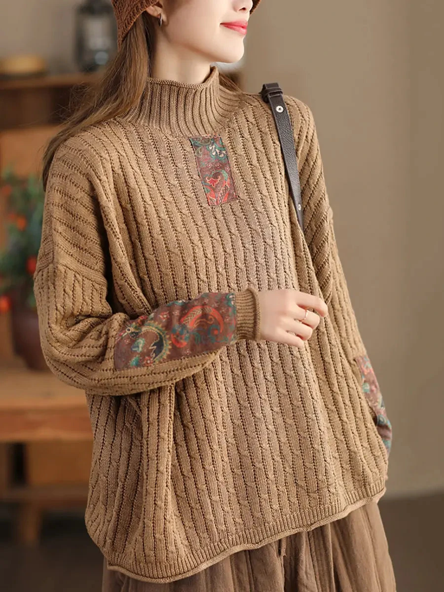Made with stylish patches , this turtleneck and raglan sleeve sweater is designed to keep you warm in the cooler months.