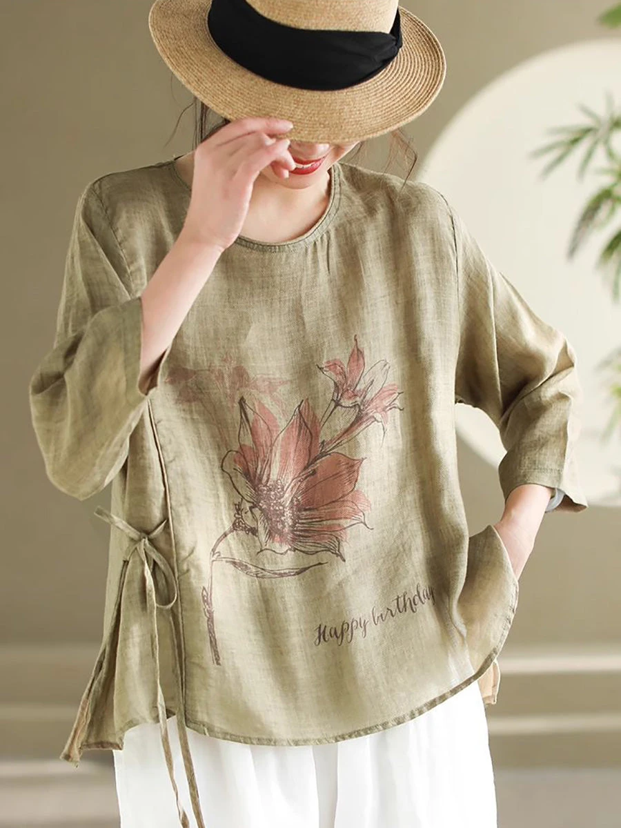 Indulge in pure comfort and effortless style with our Women Spring Flower Vintage Strap Ramie Blouse KL1039. Crafted from a delicate blend of soft, gentle fabrics, this loose-fitting blouse exudes a graceful and elegant aura. Perfect for any occasion, it’s the epitome of luxury and sophistication.
