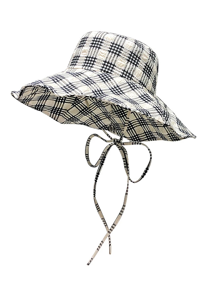 Women Summer Artsy Plaid Sunproof Large Brim Hat ZZ1042