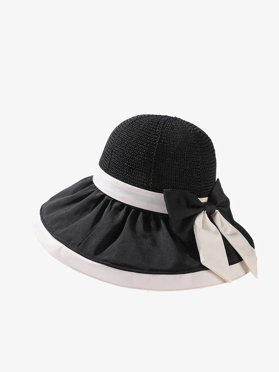 Women Summer Colorblock Large Brim Bowknot Hat WE1003