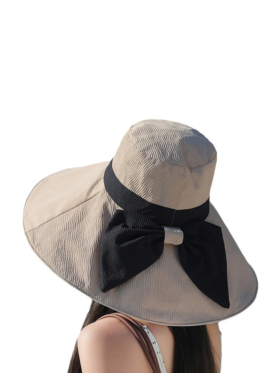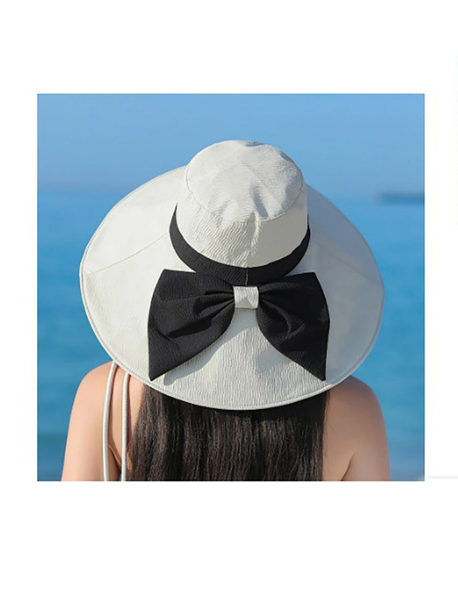 Women Summer Colorblock Sunproof Bowknot Hat QW1022