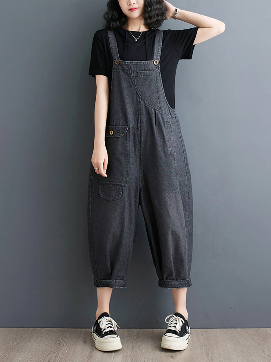 Made from 100% cotton, the Women Summer Solid Casual Loose Denim Jumpsuits XX1050 are ideal for any warm weather event. These jumpsuits have a solid pattern, practical pockets, and a standard thickness, making them both fashionable and useful. With a high waistline for a flattering silhouette and full-length pants for extra coverage, these jumpsuits are a must-have for both spring and summer. Elevate your wardrobe with these elegant and exclusive jumpsuits.