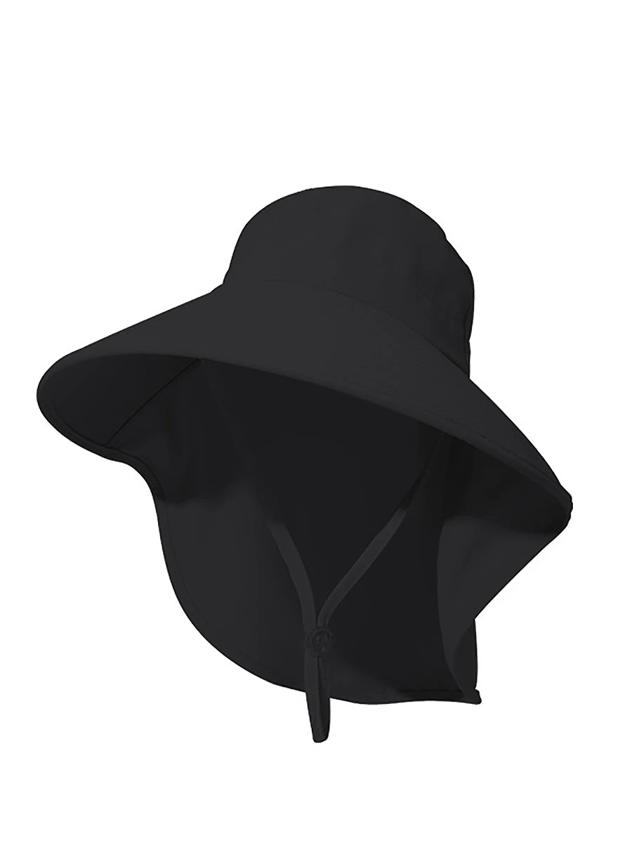 Women Summer Solid Large Brim Neck Guard Sunproof Hat WE1005
