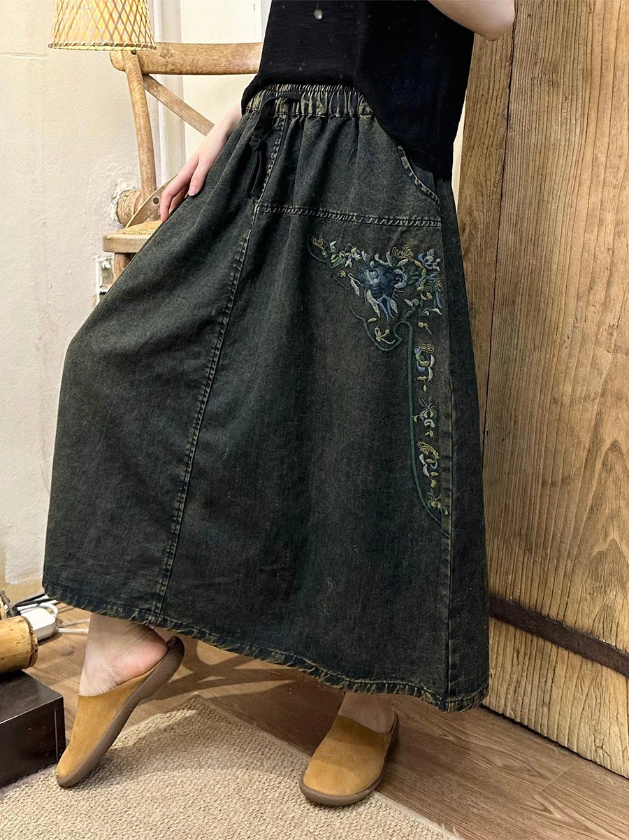 Indulge in luxury and sophistication with our Women Summer Vintage Floral Embroidery Denim Skirt PA1008. Experience the comfort of the loose fit and versatility of this piece, perfect for any occasion. Its intricate floral embroidery adds an elegant touch to your wardrobe, making it a must-have for any fashion enthusiast.