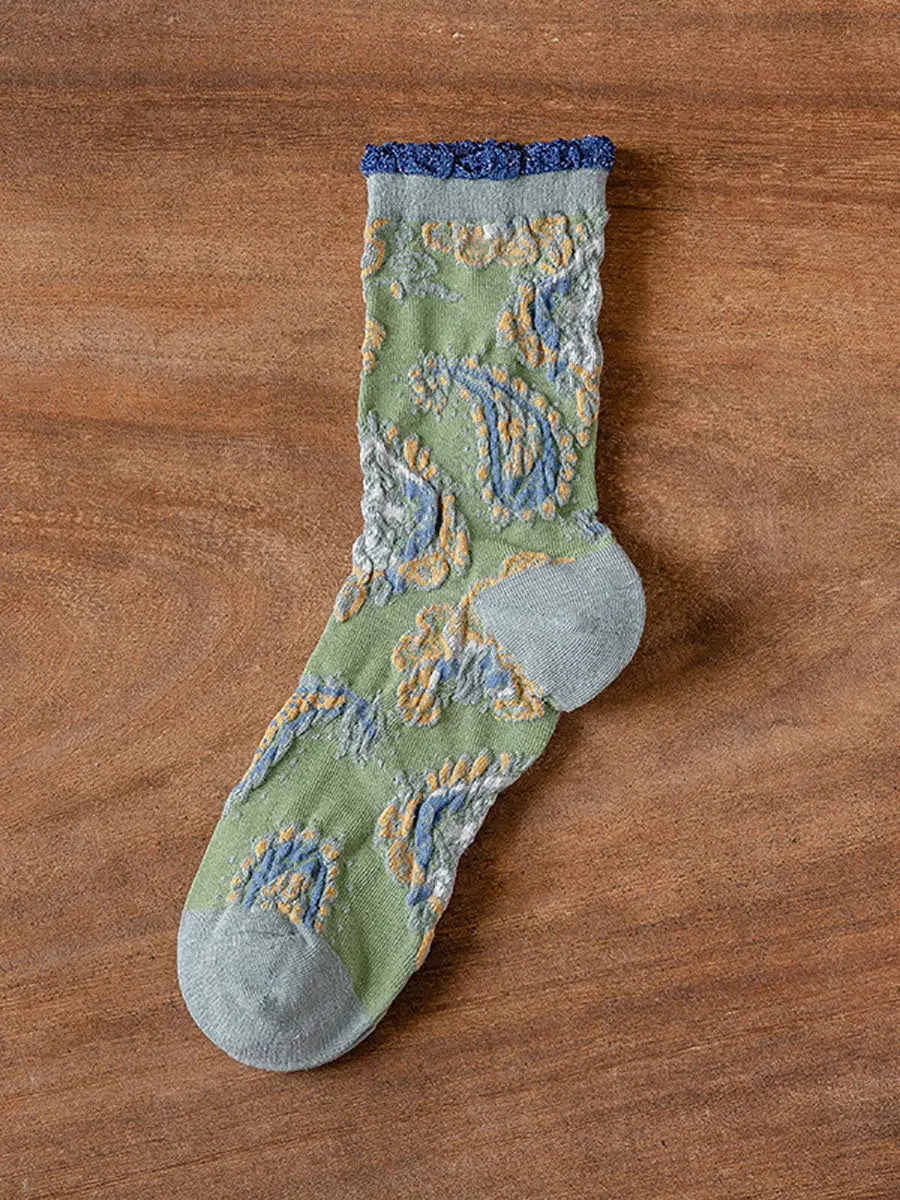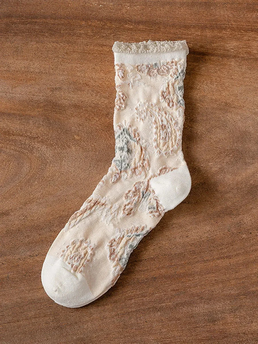 Add a pop of fun to your wardrobe with these Women Vintage Floral Jacquard Socks. Featuring a unique floral jacquard pattern, these socks are the perfect balance of vintage and modern. Made with high-quality materials, they provide comfort and style all day long. (Sock it to boring socks!)
